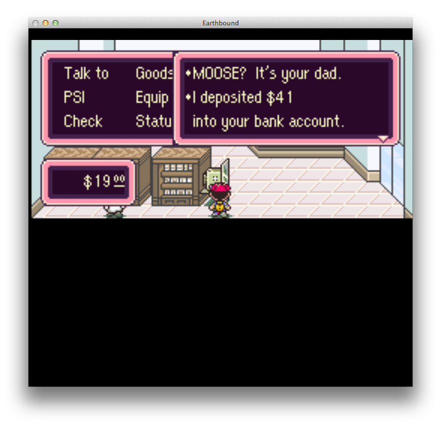 Alright let's get a full heal and a drink and then we'll hit Onett.